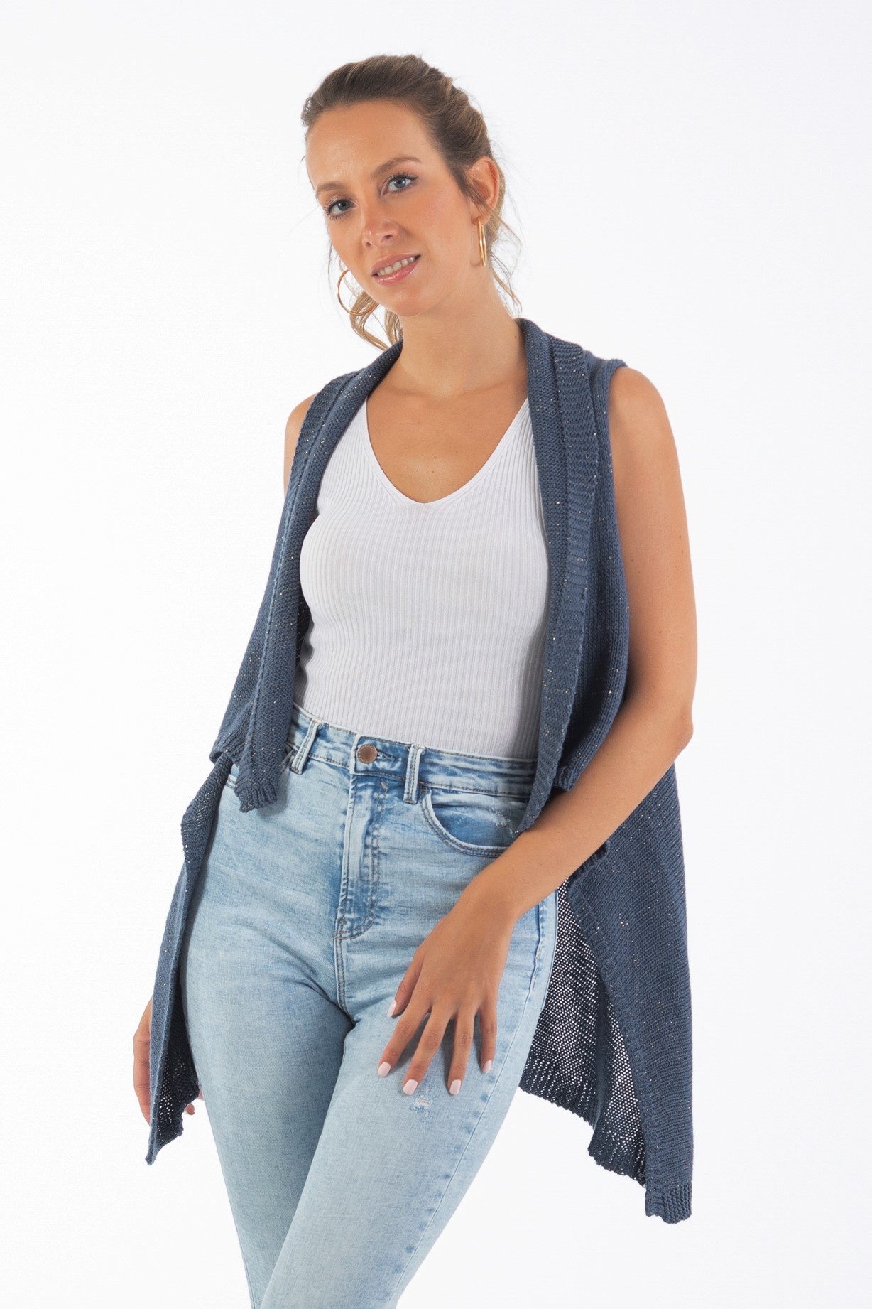 Chaleco de punto azul mujer moderno
