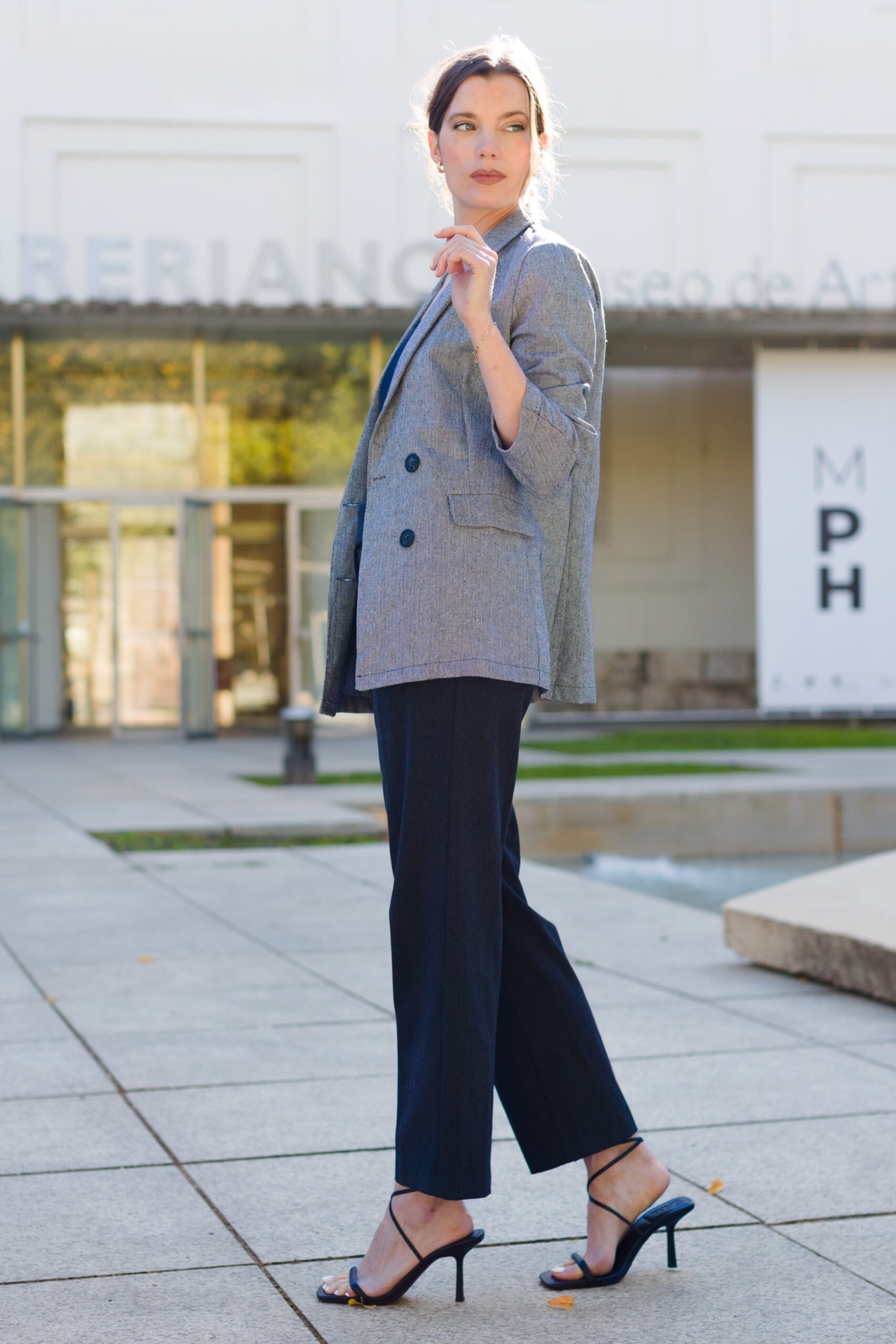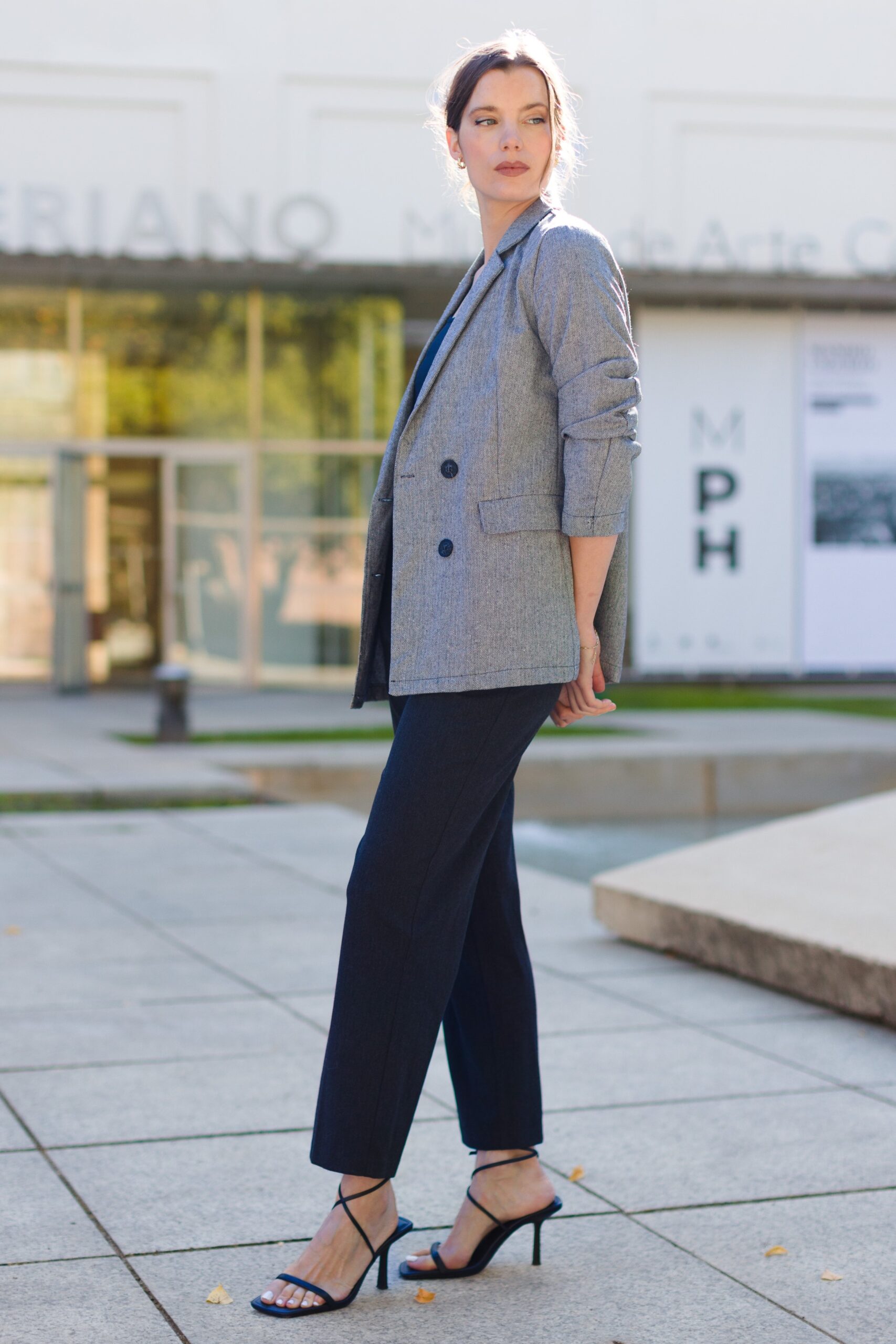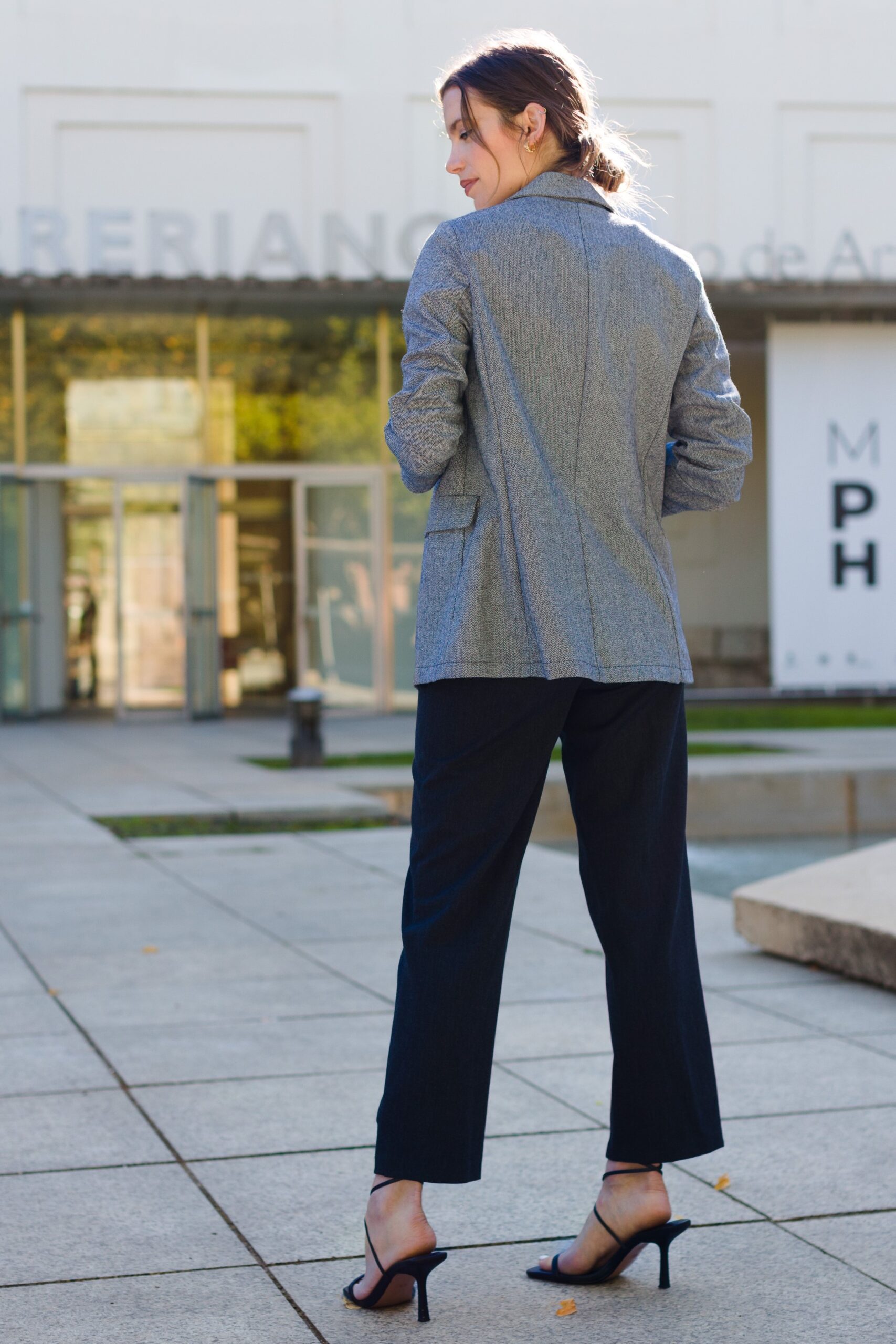 Chaqueta americana gris mujer elegante
