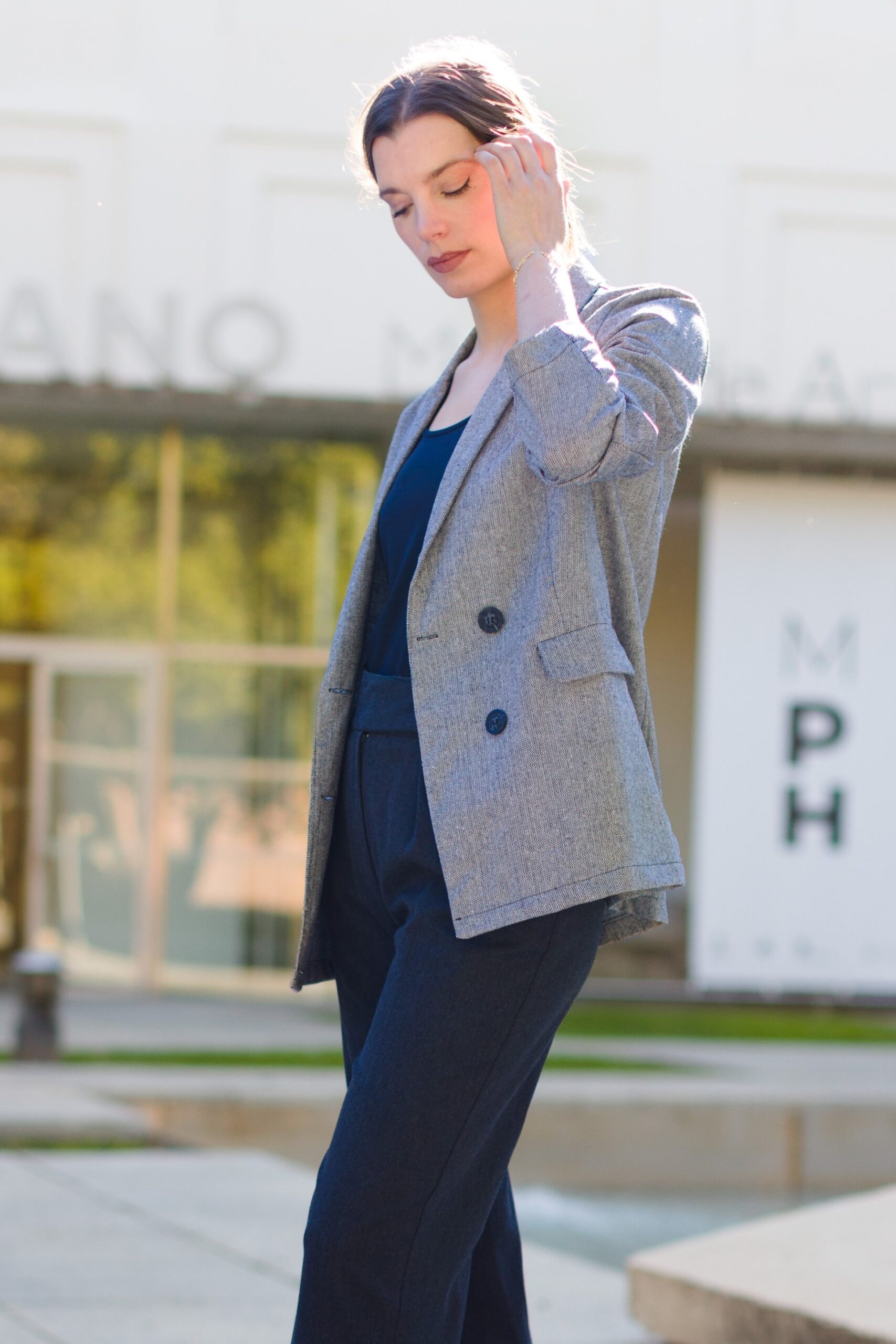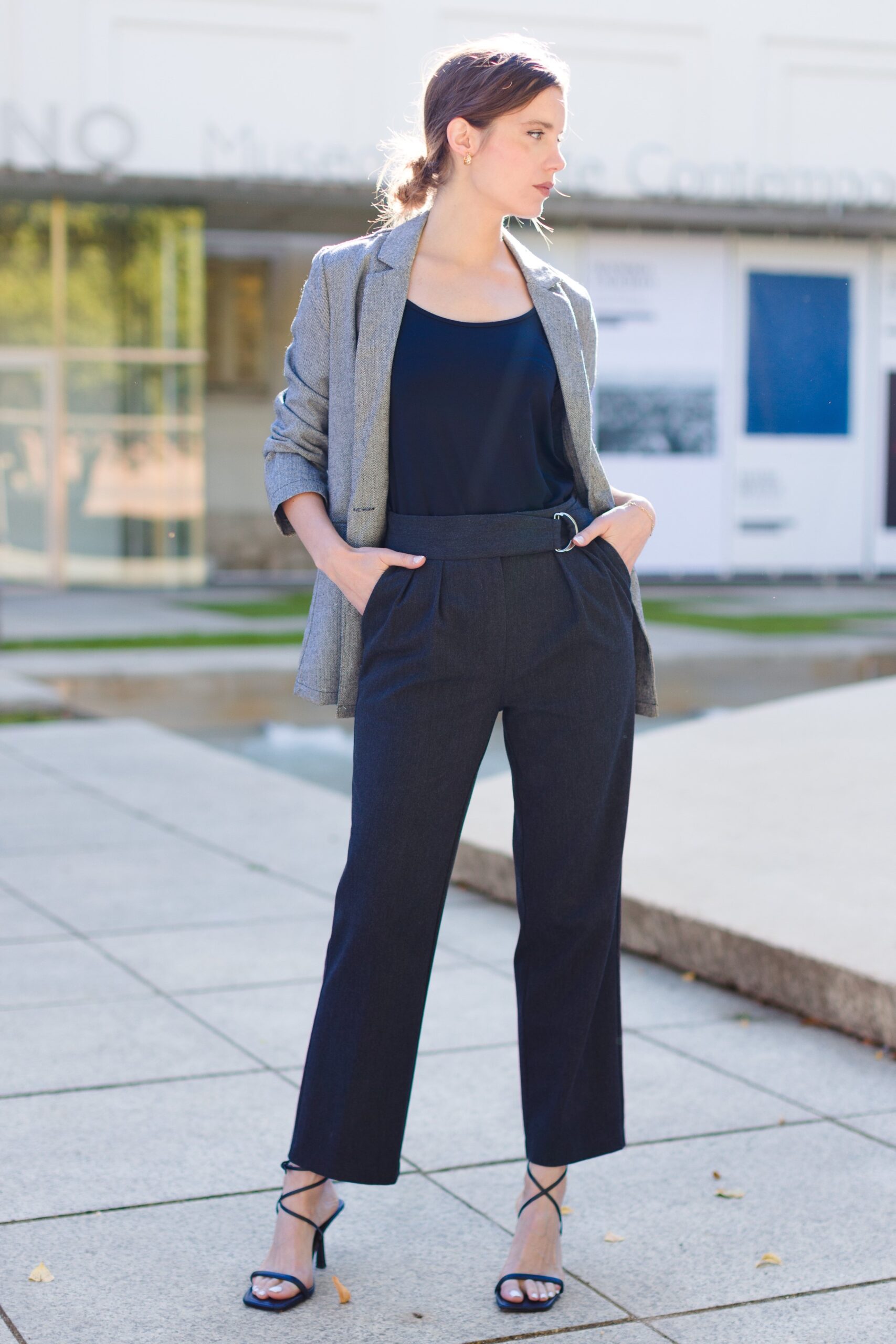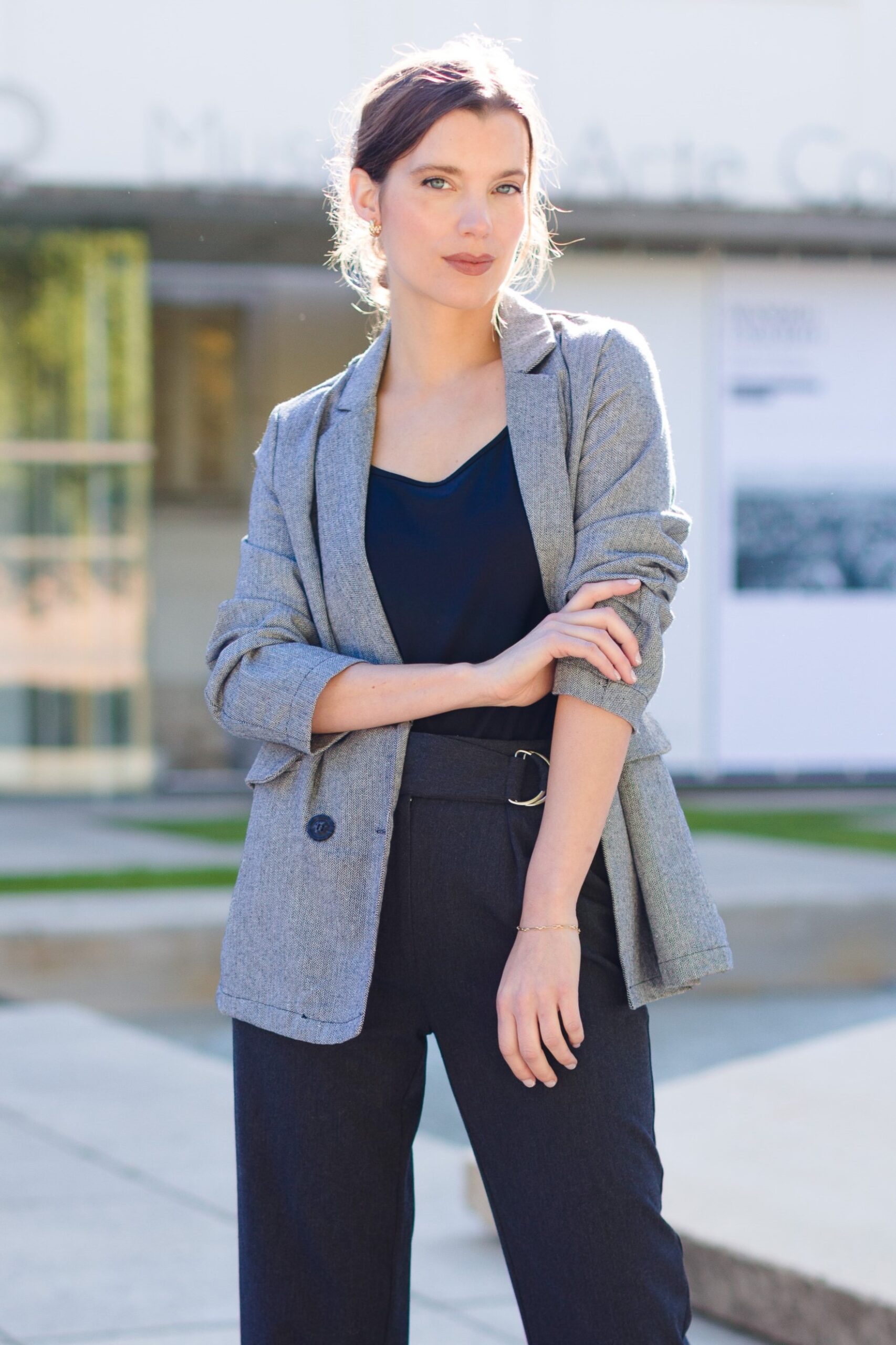 Chaqueta americana gris mujer elegante