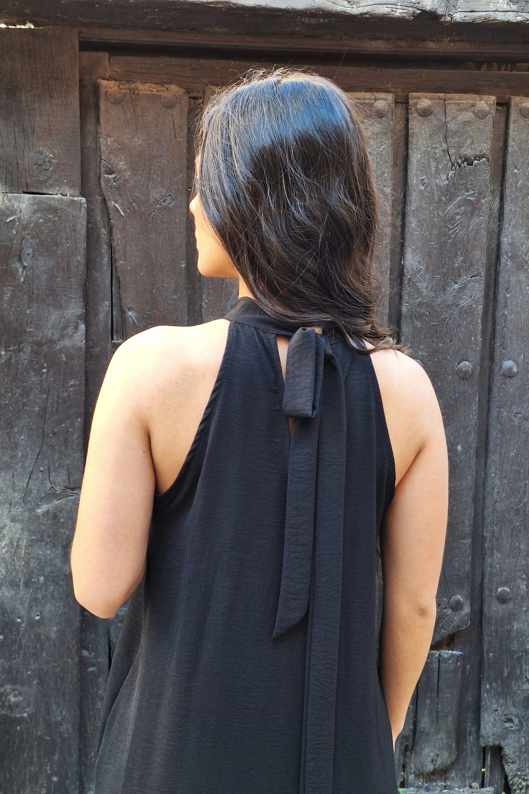 - Este vestido halter largo negro es la prenda perfecta para lucir estilo y frescura durante el verano.